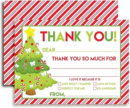Amazon.com : Decorated Tree Christmas Thank You Notes for Kids, Ten 4" x 5.5" Fill In The Blank Cards with 10 White Envelopes by AmandaCreation : Office Products